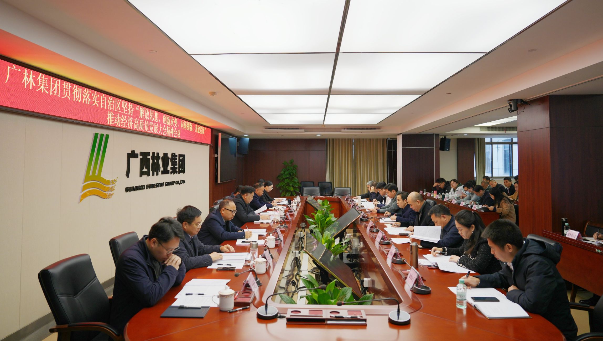 2月8日上午,廣林集團召開貫徹落實自治區堅持“解放思想、創新求變,向海圖強、開放發展”推動經濟高質量發展大會精神會議,動員集團上下按照自治區黨委、政府部署要求,以“開局即沖刺”的姿態,實干為要、創新為魂,用業績說話、讓人民評價,搶前抓早、先謀快動,奮戰“開門紅”,在新的一年邁出高質量發展的新步伐。集團黨委書記、董事長羅勇出席會議并講話,集團領導班子成員出席會議并就分管領域工作提出要求。