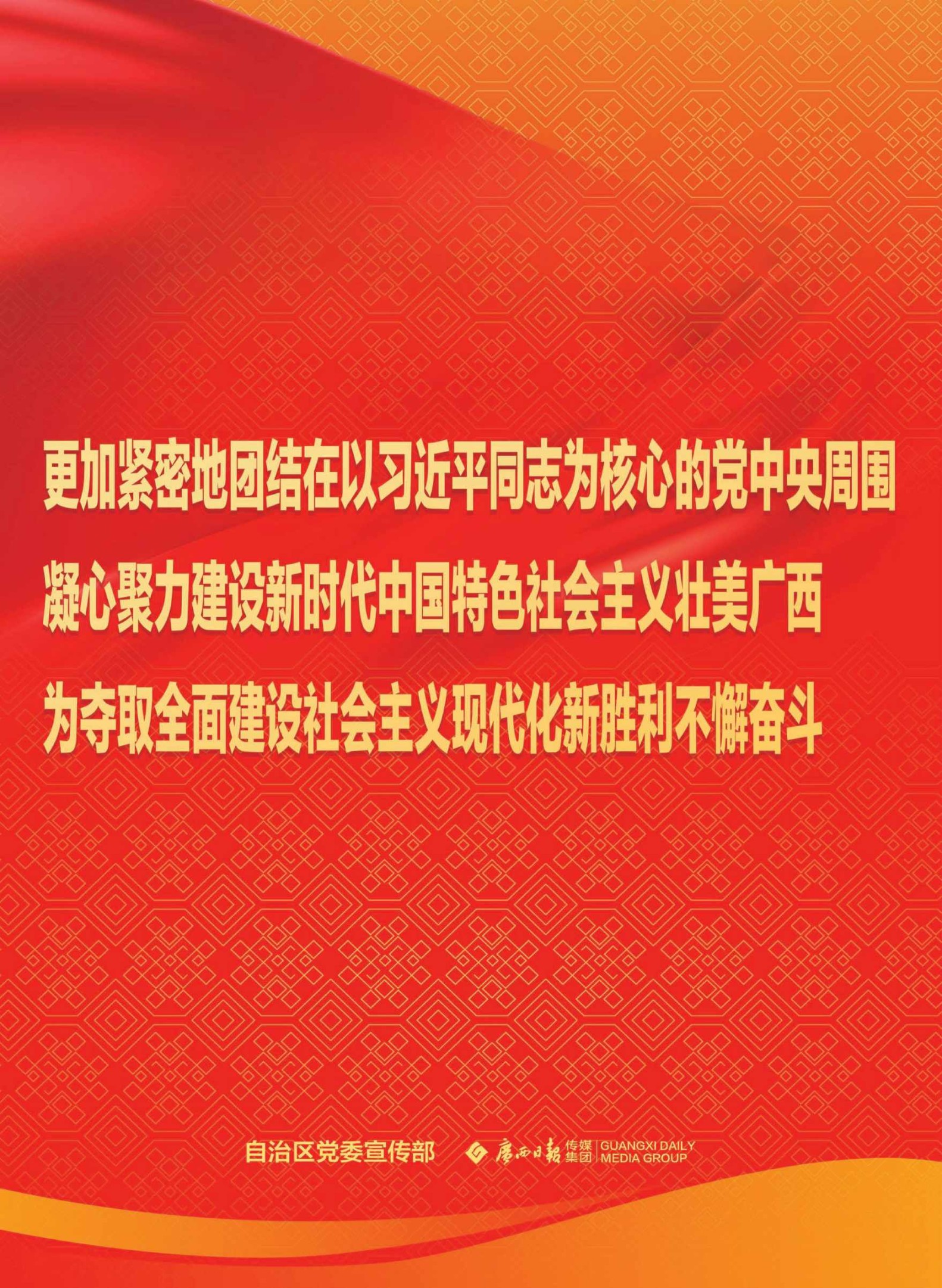更加緊密地團結在以習近平同志為核心的黨中央周圍,凝心聚力建設新時代中國特色社會主義壯美廣西,為奪取全面建設社會主義現代化新勝利不懈奮斗